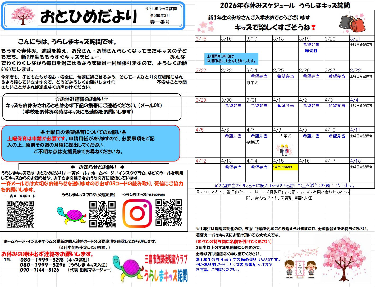 おとひめだより 2026年春休み号です。