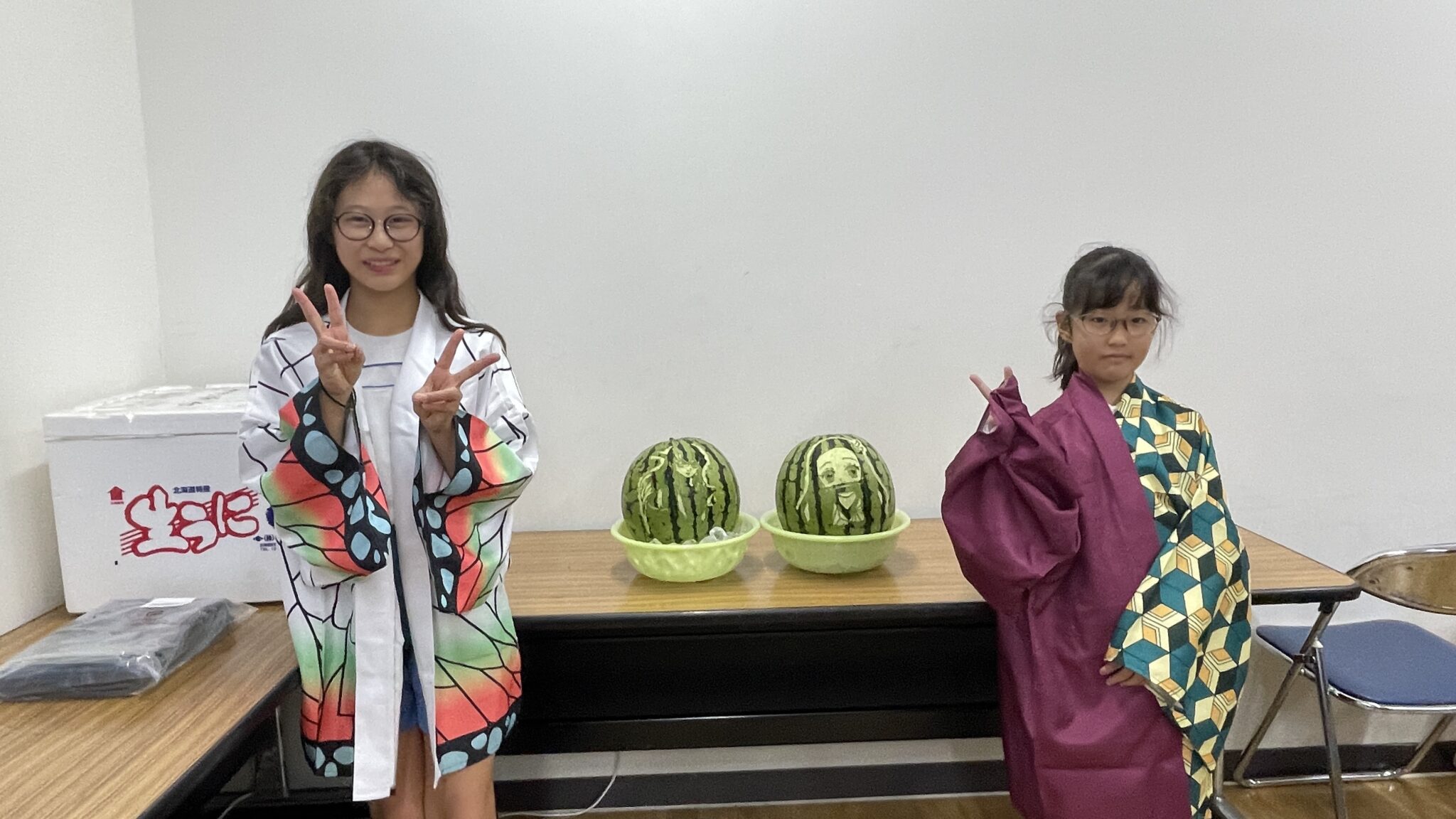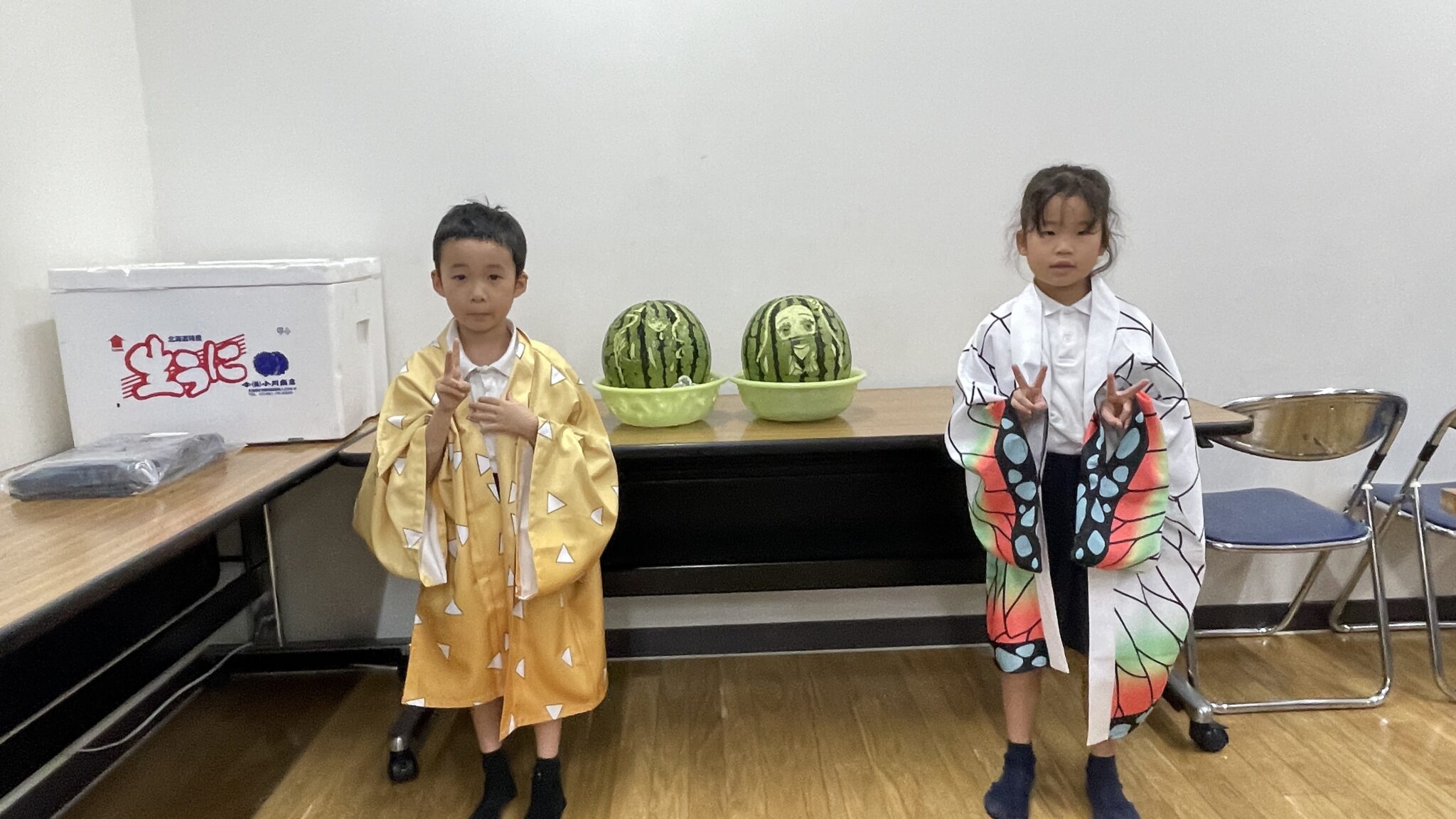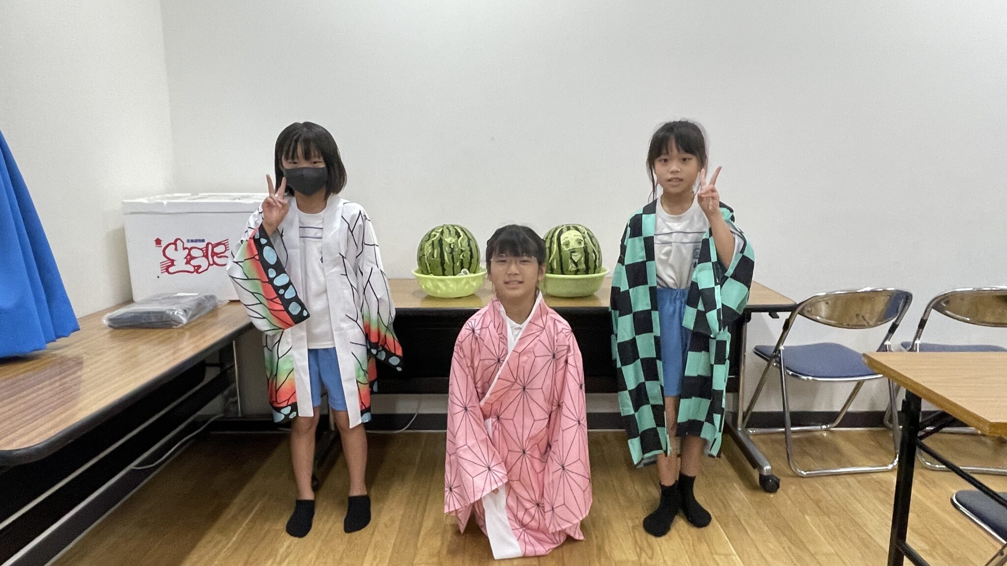 夏休みの報告が続きます。今回は当社ホテルのプロのスタッフが子供たちのためにくだものアートをしてくださるとの事で事前に鬼滅の刃キャラの人気投票を行い、禰豆子と無一郎に決定しました!
