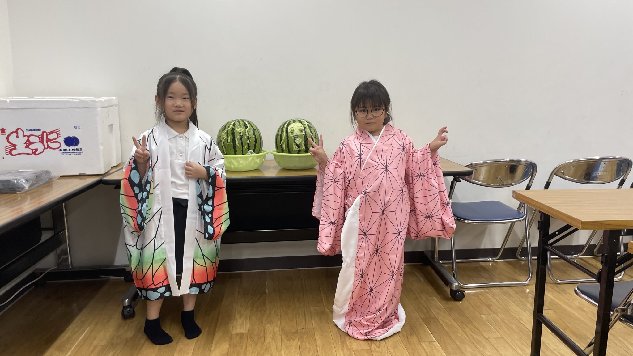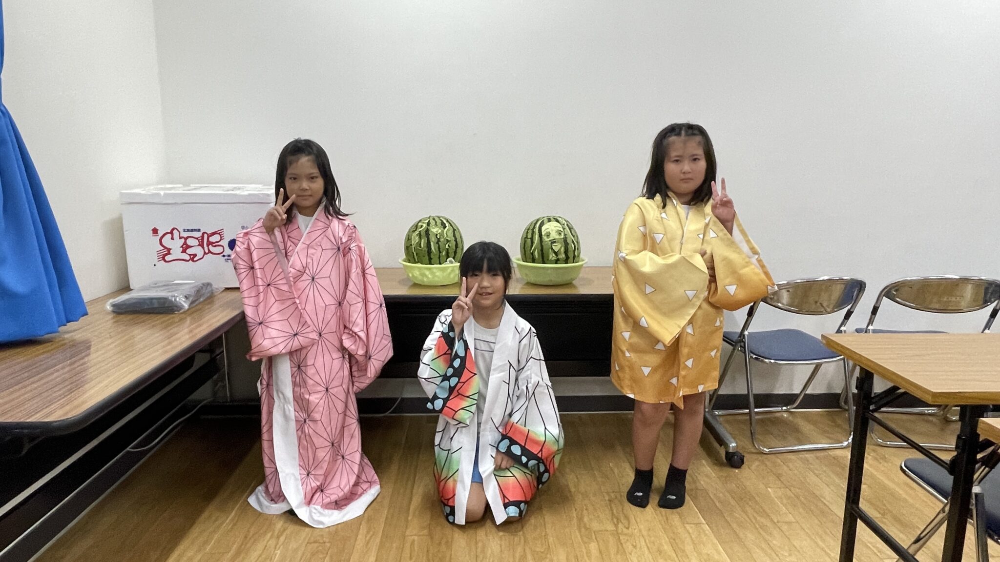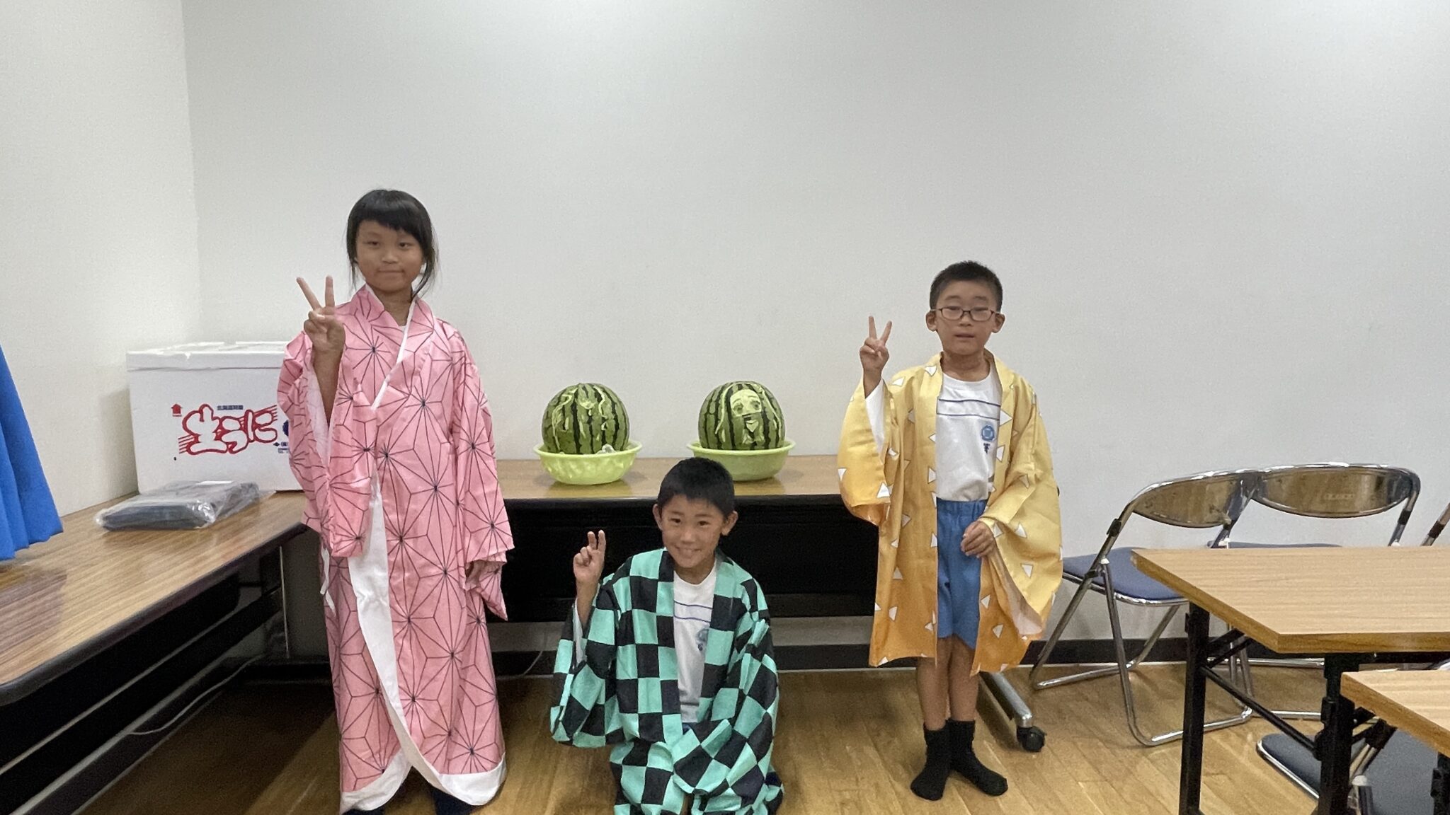 夏休みの報告が続きます。今回は当社ホテルのプロのスタッフが子供たちのためにくだものアートをしてくださるとの事で事前に鬼滅の刃キャラの人気投票を行い、禰豆子と無一郎に決定しました!