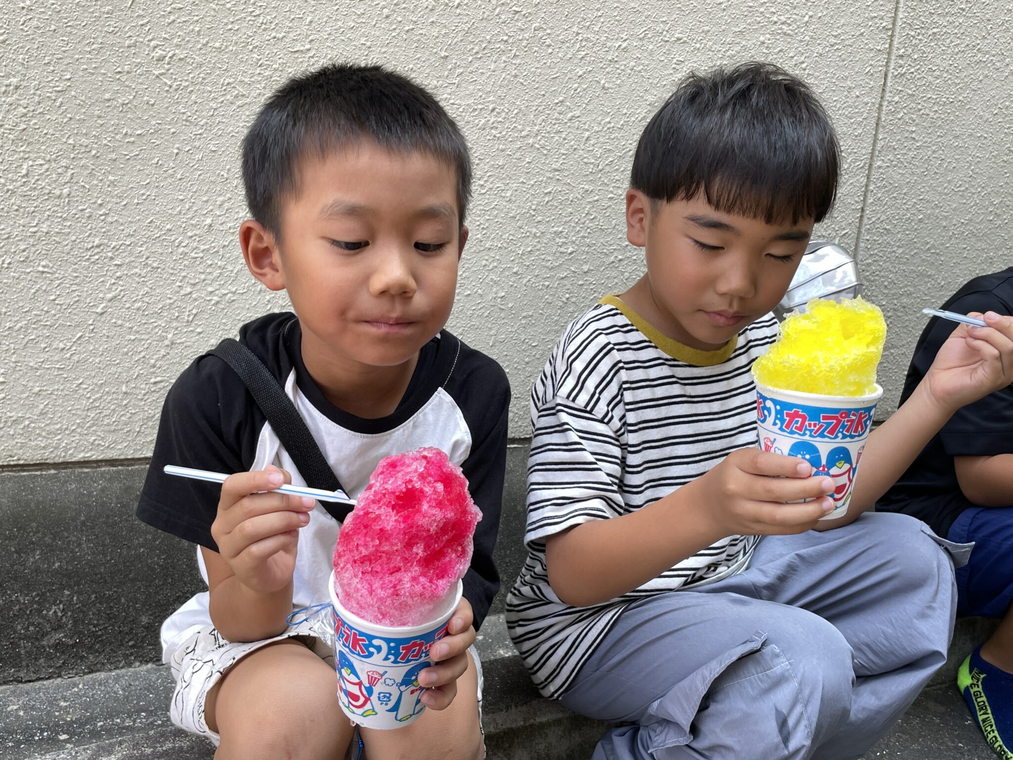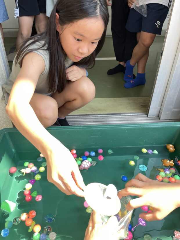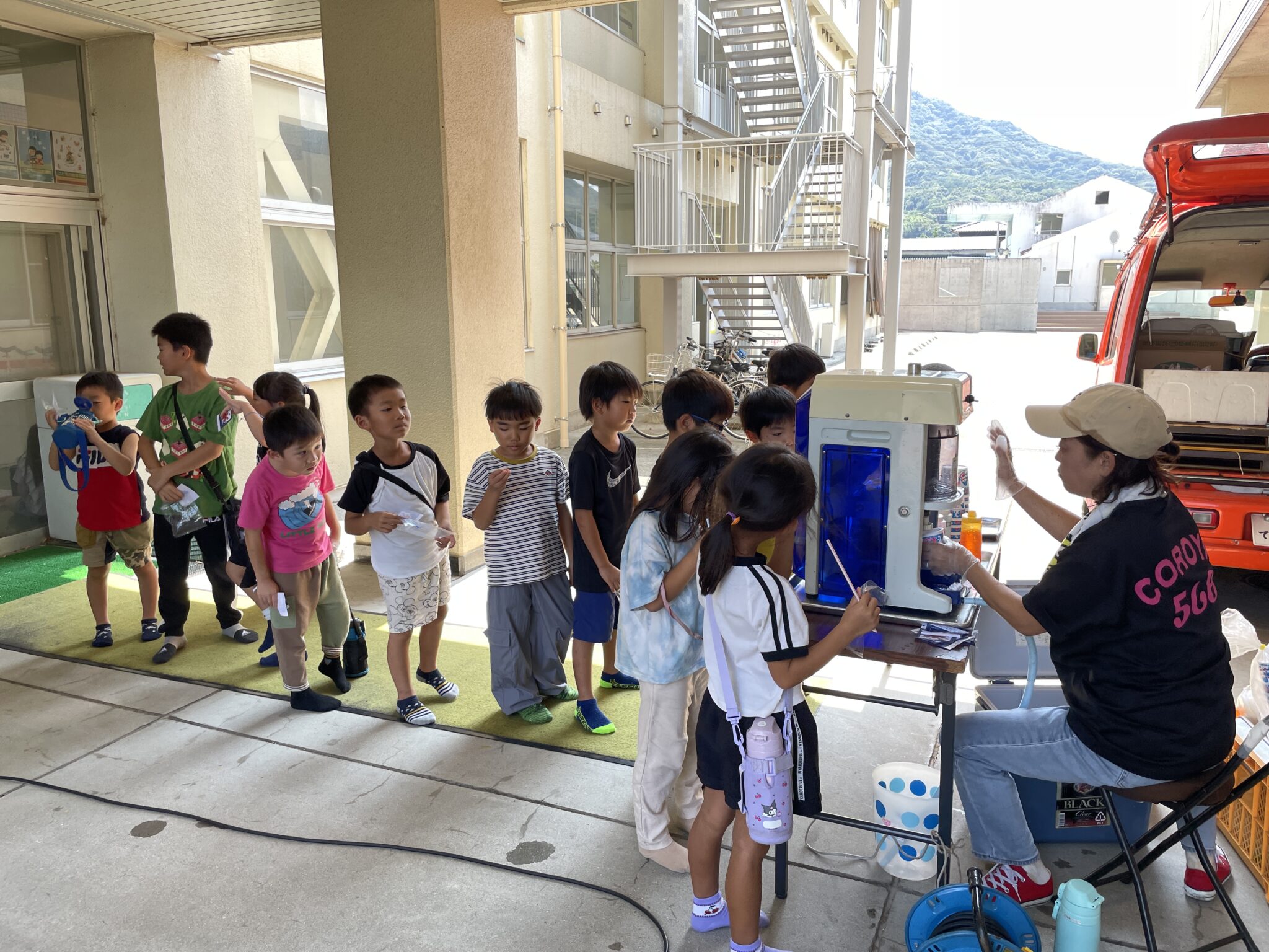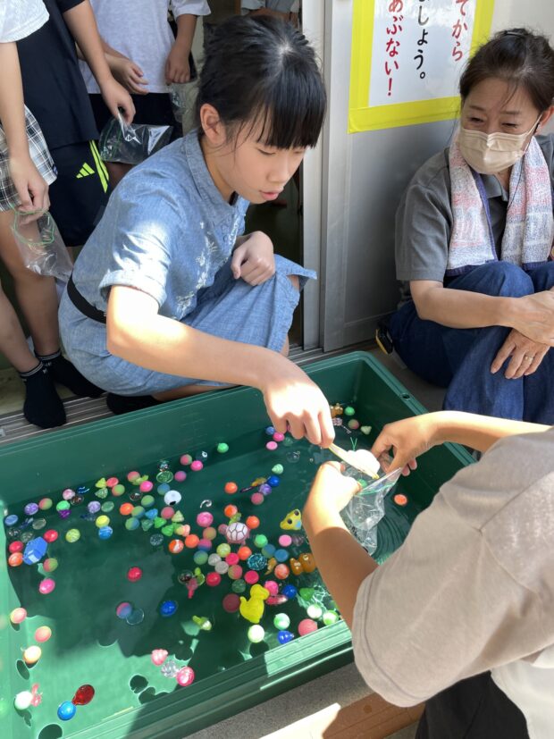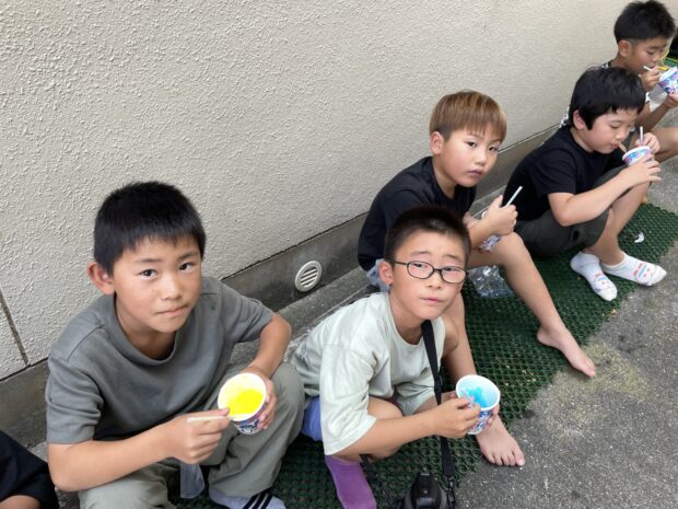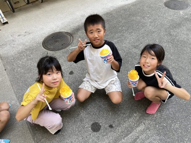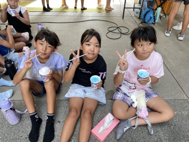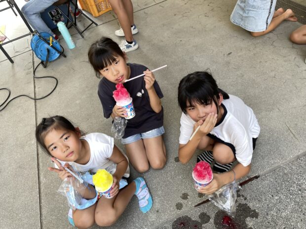 夏休みにかき氷とボールすくいでプチ縁日をしました。毎年、かき氷屋さんにお願いしてマリンウエーブやキッズの駐車場で提供しています。喜んでもらったのは画像でわかっていただけると思います。