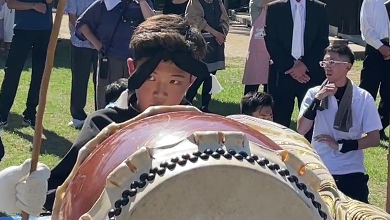 子供マーケットの他に船越八幡神社のオトグイ神事では普段とは違う真剣な表情で太鼓を叩くキッズの子の貴重な姿を見る事ができて感動でした。