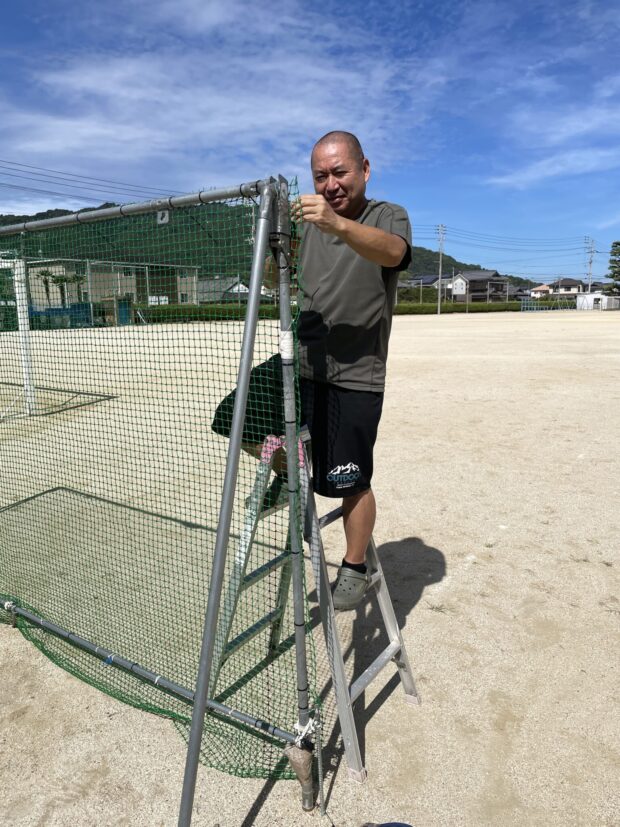 夏の特に暑かった日に大山校長先生が汗びっしょりでネットの修繕をしていました。「元気な若い先生にお願いしたらどうですか?」とアドバイス?をしたのですが「みんな忙しいのですよ」と笑いとばされました。