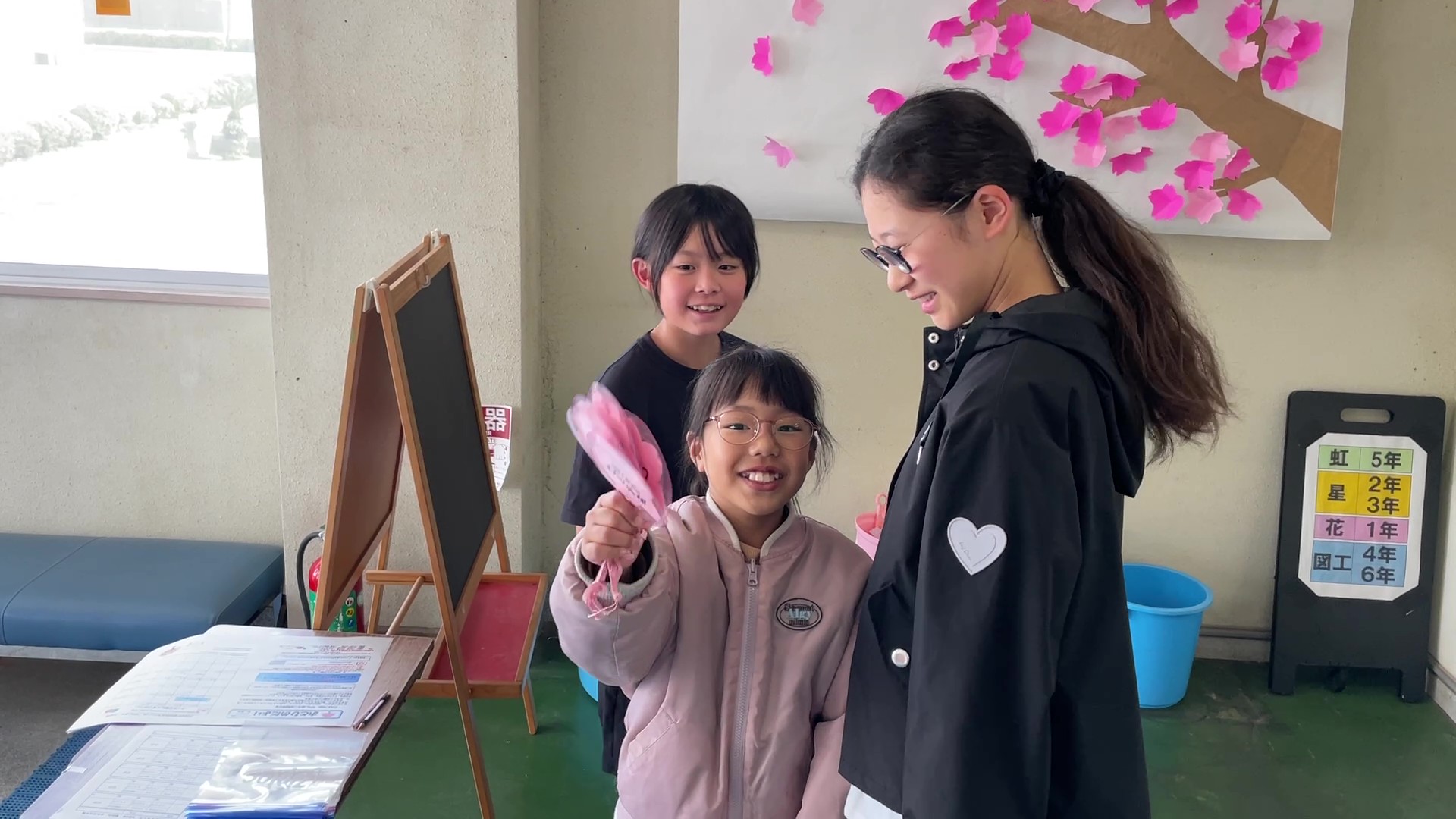 1年生の初登室の日から、5年生の女の子たちが名札をつけてくれたり、下駄箱やロッカーの場所を教えてくれたりと、自然と手伝ってくれていてとても助かっています。